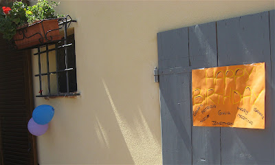 They are birthday wishes from our guests and the translations are: Happy Birthday-signed by everyone in the 2 families, 2. You are over 50 and with Bacco at my side i will always be cool!!!